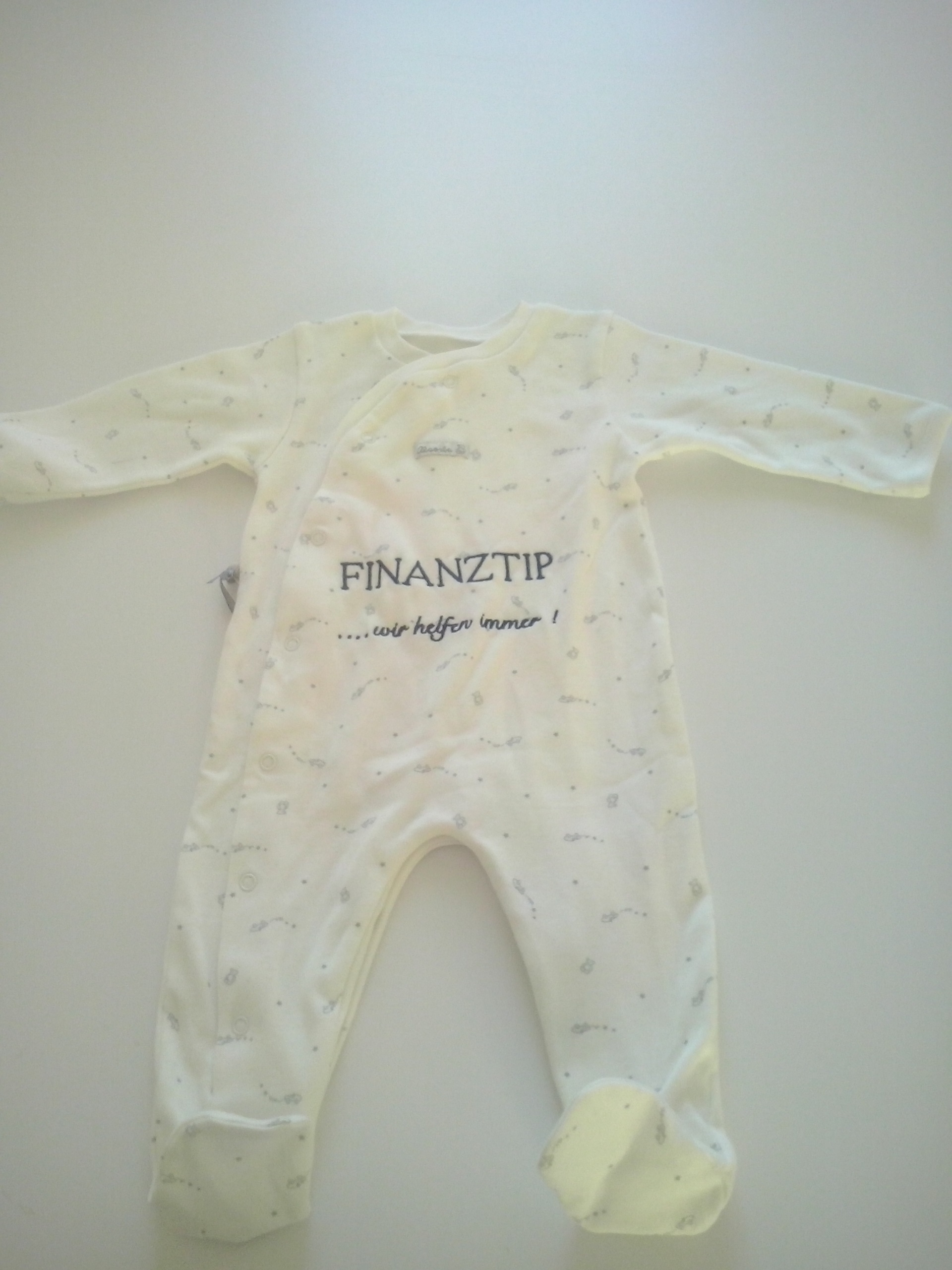 Ein Mitarbeiter hat heute diesen Strampler bekommen. Den wollte ich Euch nicht vorenthalten :) Finanzerziehung fängt eben schon bei den Kleinsten an ;)