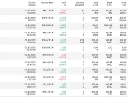 Bei Scalable kann ich nur über die Börse ordern. Orderkosten "nur" 0,99€. Der Fonds kostete eben gerade 100,35€ (statt 100,28€).