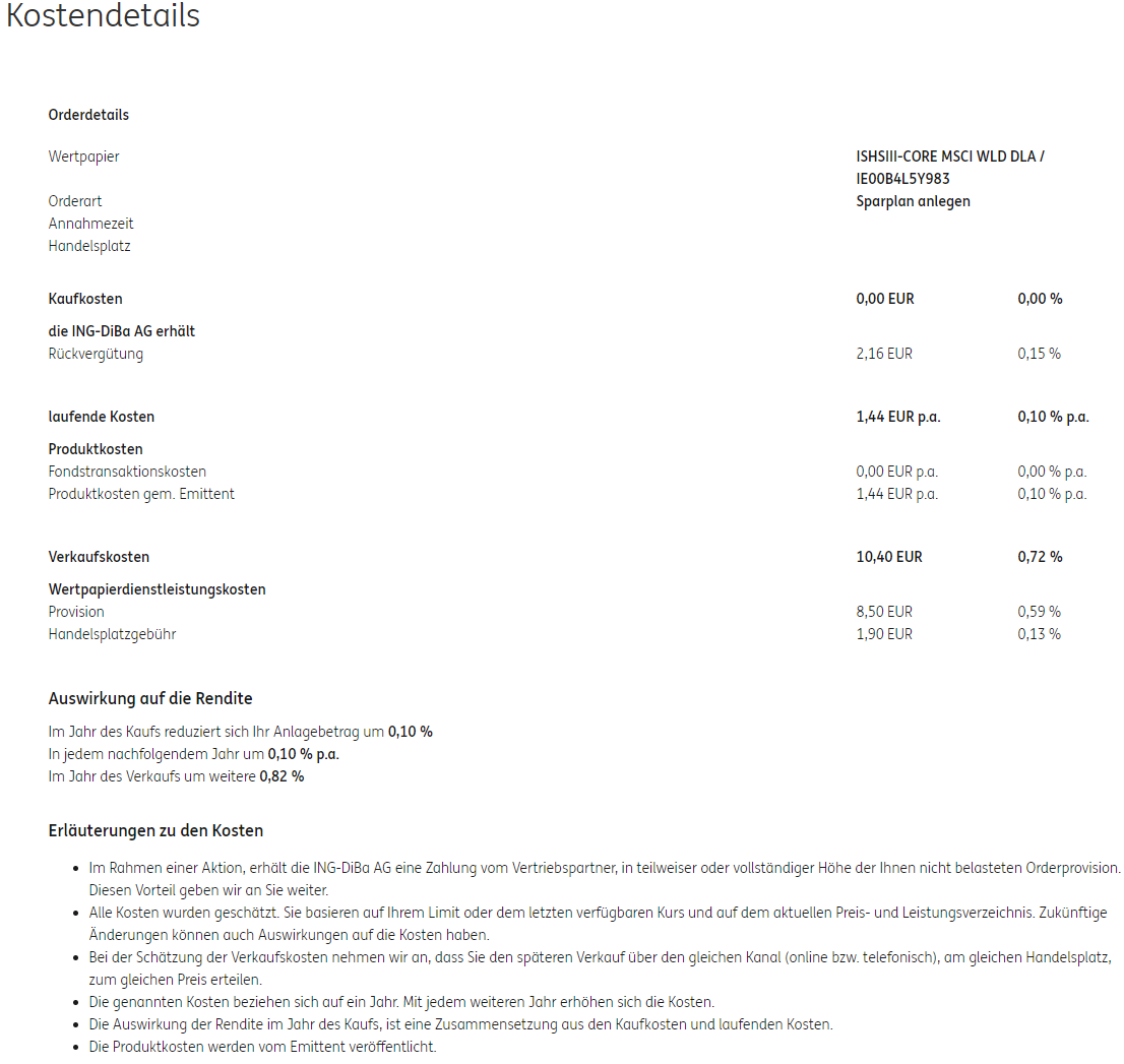 - Habe mal die Daten vom MSCI World bei ING eingegeben (6000€ Einmalanlage, 120€ Sparplan). Dabei kamen folgenden Gebührenauflistungen raus.