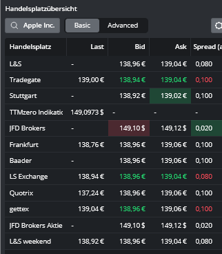 Nach meiner Beobachtung hat gettex gegenüber L&S minimal erhöhte Spreads, da ich dort aber mindestens 1 € zahle ist gettex i.d.R. trotzdem billiger. Es gibt viele Möglichkeiten Handelsplatzvergleiche anzustellen. Ich finde die bei Guidants am besten. Hier mal als Beispiel Apple, da D schon zu hat.