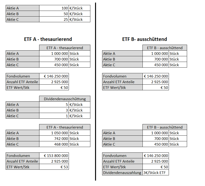 Ein ETF versucht ja den Wert eines entsprechenden Indexfonds abzubilden, unabhängig ob es sich um einen ausschüttenden oder thesaurirenden ETF handelt. Wie ETF Anteile durch Authoriced Participants entstehen bzw. vernichtet werden (Stichwort Creation und Redemption) verstehe ich soweit.