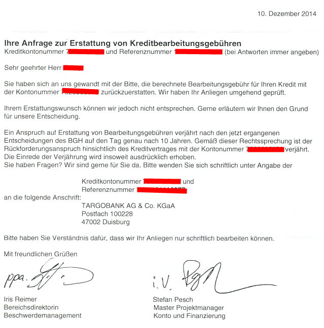 Ich denke nicht. Mein Anwalt hat sich nicht mehr bei mir gemeldet... daher gehe ich davon aus, dass die Targo auf den MB überhaupt nicht reagiert hat?!