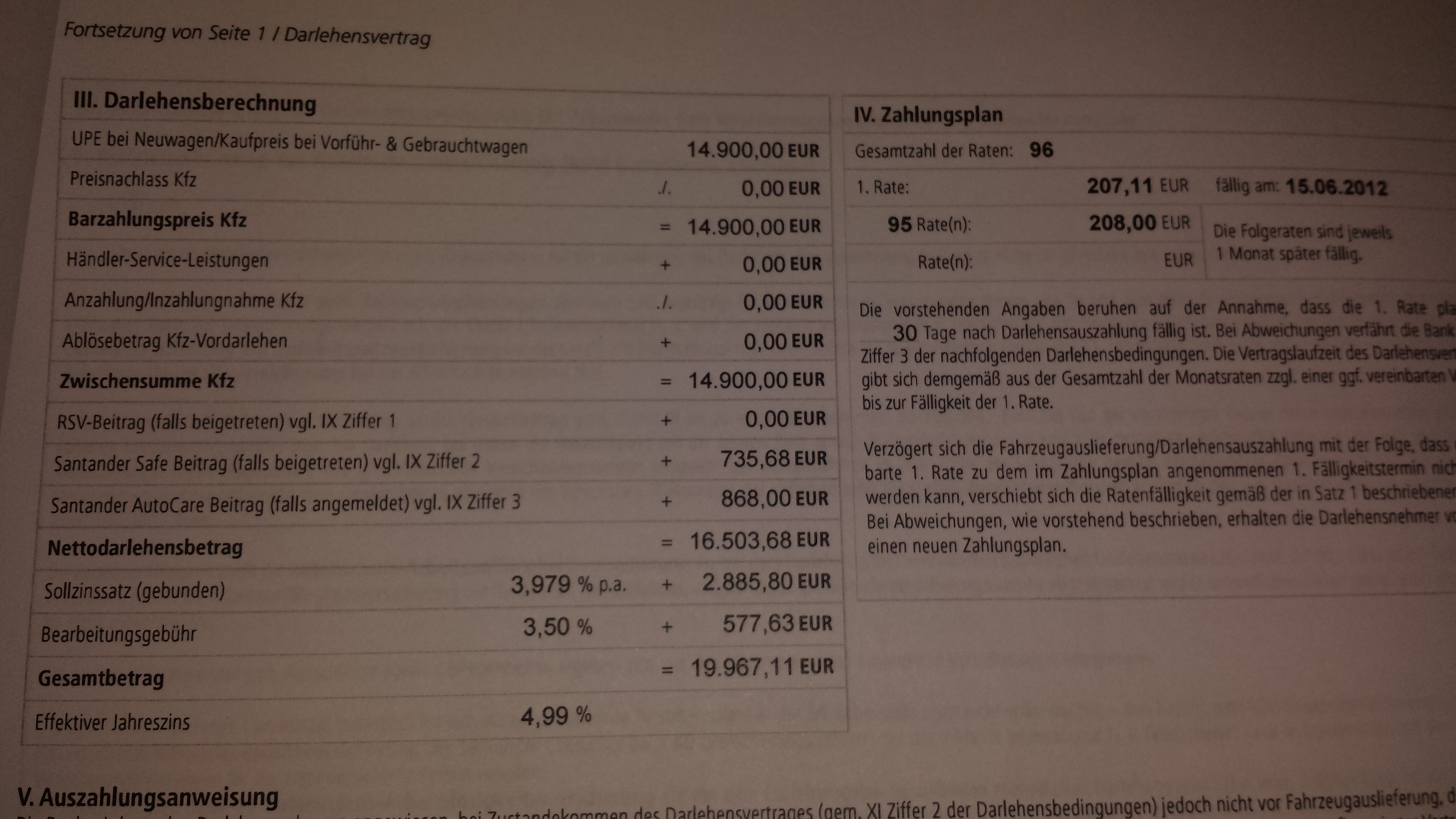 D.h. wir haben jeweils bei Auszahlung der angeforderten Darlehenssummen die 4% abgezogen bekommen, dann aber weiterhin den Gesamtbetrag 28.000 und nicht den Nettobetrag der uns ausgezahlt wurde von 26.880 EUR bedienen müssen!