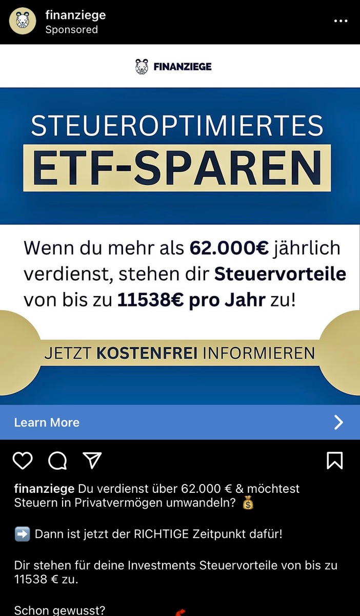 In meinem Instagram erscheint in letzter Zeit häufig Werbung das man mit ETFs viel Steuern sparen könnte. Nach Google Recherche kam ich auf eine Seite die behauptet das man die Beiträge zu einem ETF Sparplan einfach als Altersvorsorge absetzen könnte (hier der Link: Link Vermögenszentrum)