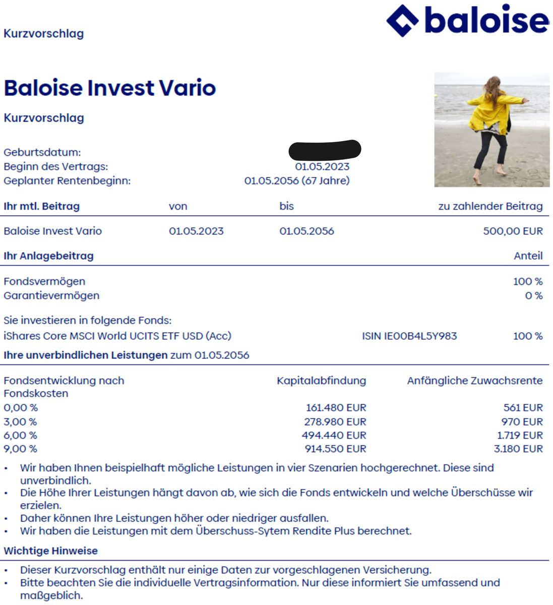 Diese investiert in ein von mir ausgesuchen ETF, ist monatlich kündbar, kann monatlich gewechsel werden, effek. jährliche Kosten 1,2% und einmalige Abschlusskosten je nach Einzahl-Variante: