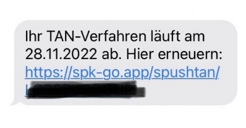 Ich gehe gerade der Frage auf den Grund ob diese SMS zufällig an Handynummern oder gezielt an Sparkassen Kunden geschickt werden. Kennt jemand diesen (oder einen sehr ähnlichen) SMS Text? Und wenn ja seid ihr bei der Sparkasse oder nicht?