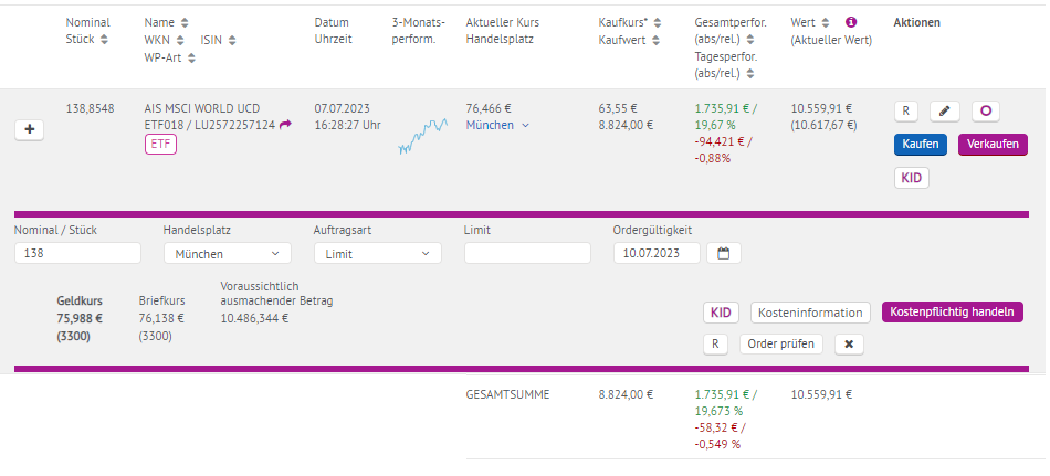 Ich möchte meinen angesparten ETF bei OnVista verkaufen. Beim Verkauf kann ich nur Stückzahlen eingeben. Wie bekomme ich denn jetzt die krumme angesparte Summe wieder verkauft? Wenn ich die Stückzahl durch die Summe nehme, bleibt ja ein gewisser Restbetrag übrig.