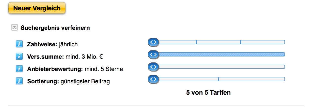 ich habe Ihren Tipp befolgt und bin auf Mr. Money gegangen, um den Interrisk Tarif zu erhalten. Leider kann ich da aber nicht finden, wo man den Betrag der Selbstbeteiligung einstellen kann, sodass mir nur relativ teure Tarife mit 0 € Selbstbeteiligung angezeigt werden.