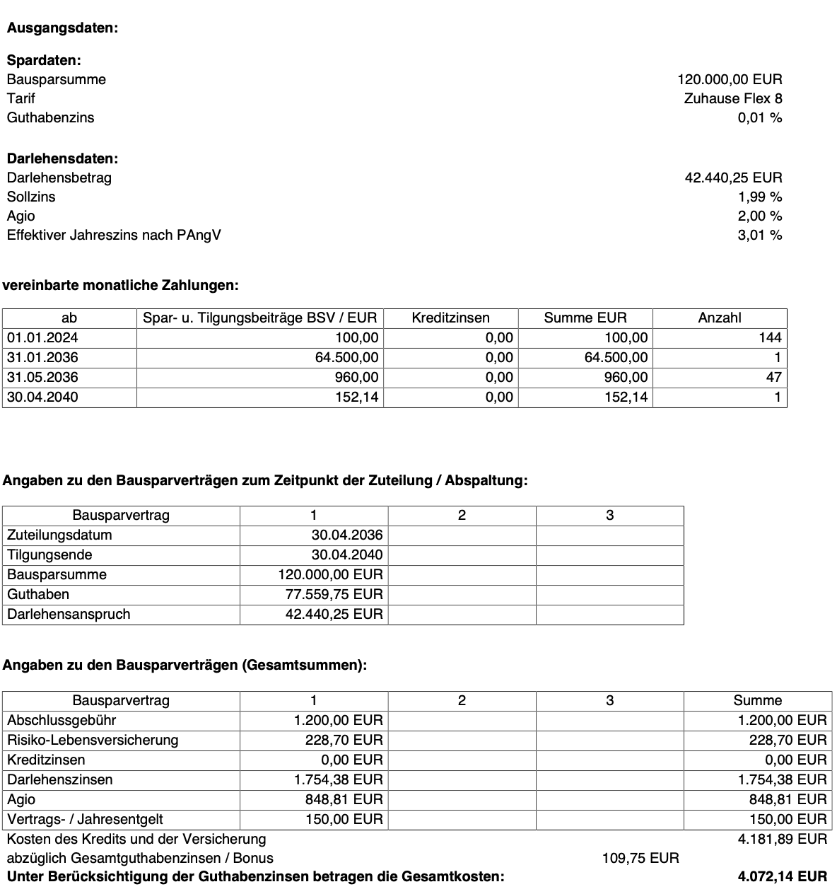 Ursprünglich wurde ich angeteasert, dass ich einzahlen kann, wann ich möchte. Super, dachte ich mir, denn die nächsten 2,3 Jahre werden wir wenig Geld haben (kleine Kinder, Investitionen, etc.). aber danach sollte es wieder bergauf gehen. Meine Idee war den Zins zu sichern, aber erstmal 5,6 Jahre nichts einzuzahlen, dafür später größere Batzen (je nachdem, ob wir das Darlehen für den KFW- oder Hausbankbetrag nutzen möchten). Jetzt hieß es: „sorry, so einfach ist das nicht, man muss schon grob regelmäßig einzahlen – oder der Zins steigt.“