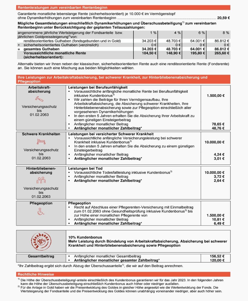 Ich möchte nicht jahrelang bezahlen und am Ende von den teuren Sparprodukten nichts haben. Die BU werde ich höchstwahrscheinlich abgelehnt bekommen. Aber mir geht es hauptsächlich um das Sparen und die angegebenen Fonds. Vielleicht kann mir hier jemand helfen?