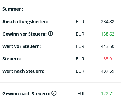 die freundliche Gewinn/Verlustanzeigen dann wieder stimmt,