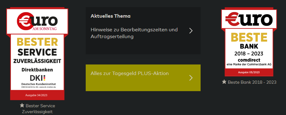 Bei der comdirect versuchte ich ein Girokonto zu eröffnen weil es da aktuell gute Zinsen für ein Tagesgeldkonto gibt. Nach dem Video-Ident-Verfahren war mir das weitere Vorgehen nicht ganz klar und ich versuchte die Hotline zu erreichen. Auf der anderen Seite antwortete mir ein Automat, der mich nicht verstand. Ich bin deutscher Muttersprachler und spreche ohne Akzent. Ich frage mich, wie das Leute machen, die kein Hochdeutsch sprechen. Für mich war der Fall erledigt, mit der comdirect werde ich ganz sicher keine Geschäfte machen und ich bin froh, dass die noch kein Geld von mir bekommen haben.