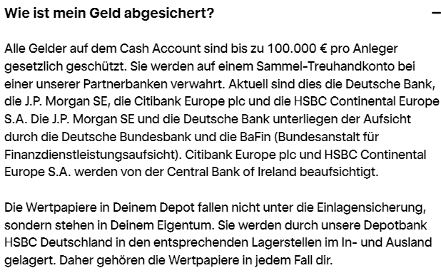 Ich habe eine Frage zur Sicherheit des Geldes auf dem Depot (angelegt, nicht auf dem Verrrchnungskonto).