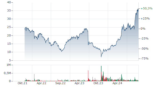 Hier ist der Kurs von Siemens Energy (auf die sich das 12,5%-Angebot bezieht) in den letzten 3 Jahren: