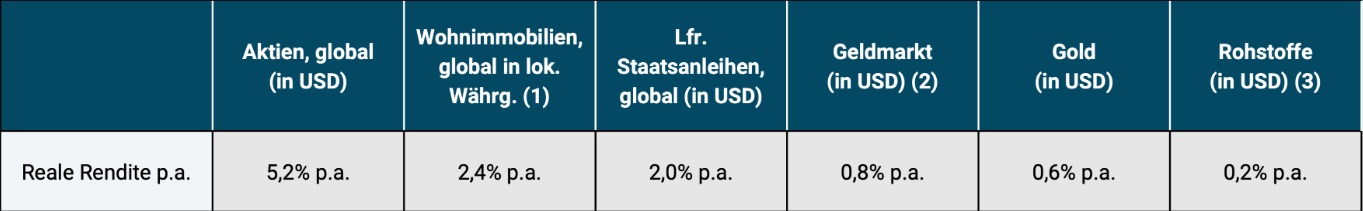 Vergleich historischer Gesamtrenditen der wichtigsten Asset-Klassen von 1900 bis 2017 (118 Jahre) – inflationsbereinigt