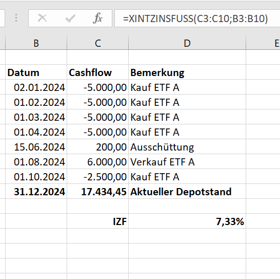 Das klappt, solange ich "normale" Einzahlungen (Sparplan) habe. Sobald ich etwas verkaufe oder eine größere Einmalzahlung habe, verzerrt sich das Ergebnis meiner Meinung nach extrem.