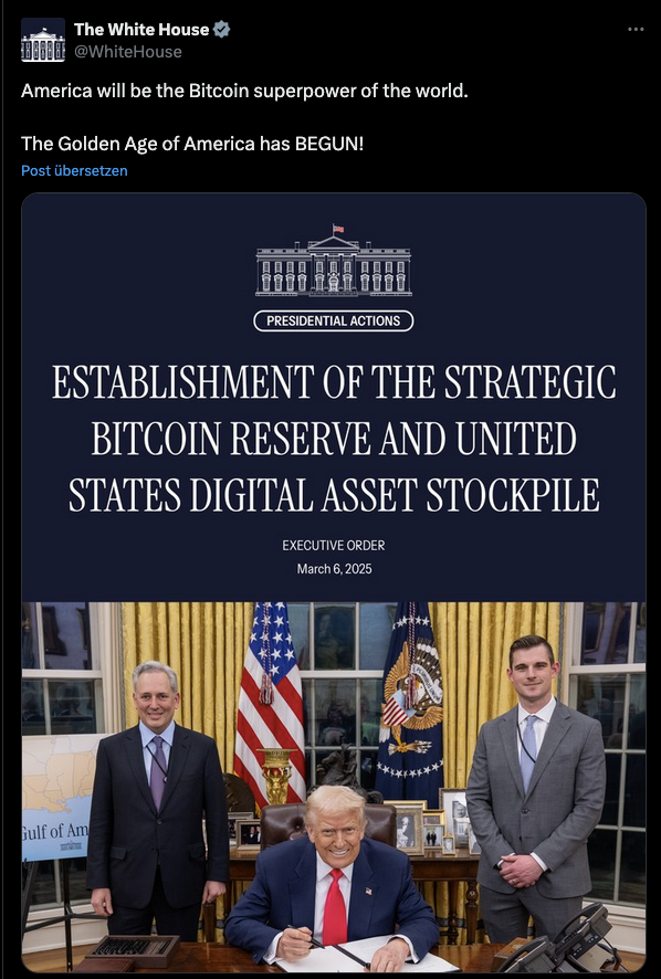 Aber denkt doch bitte mal selbst etwas nach und lasst das einen Moment sacken.... eine Kryptowährung die von paar Cents auf 108.000 Dollar gestiegen ist innerhalb von 15 Jahren. Wird jetzt offiziell als Reserve der wichtigsten und mächtigsten Volkswirtschaft der Welt eingeführt. Mit der erlaubnis weitere Bitcoins kostenneutral zu kaufen und einem Verbot für jegliche Bitcoin Verkäufe.