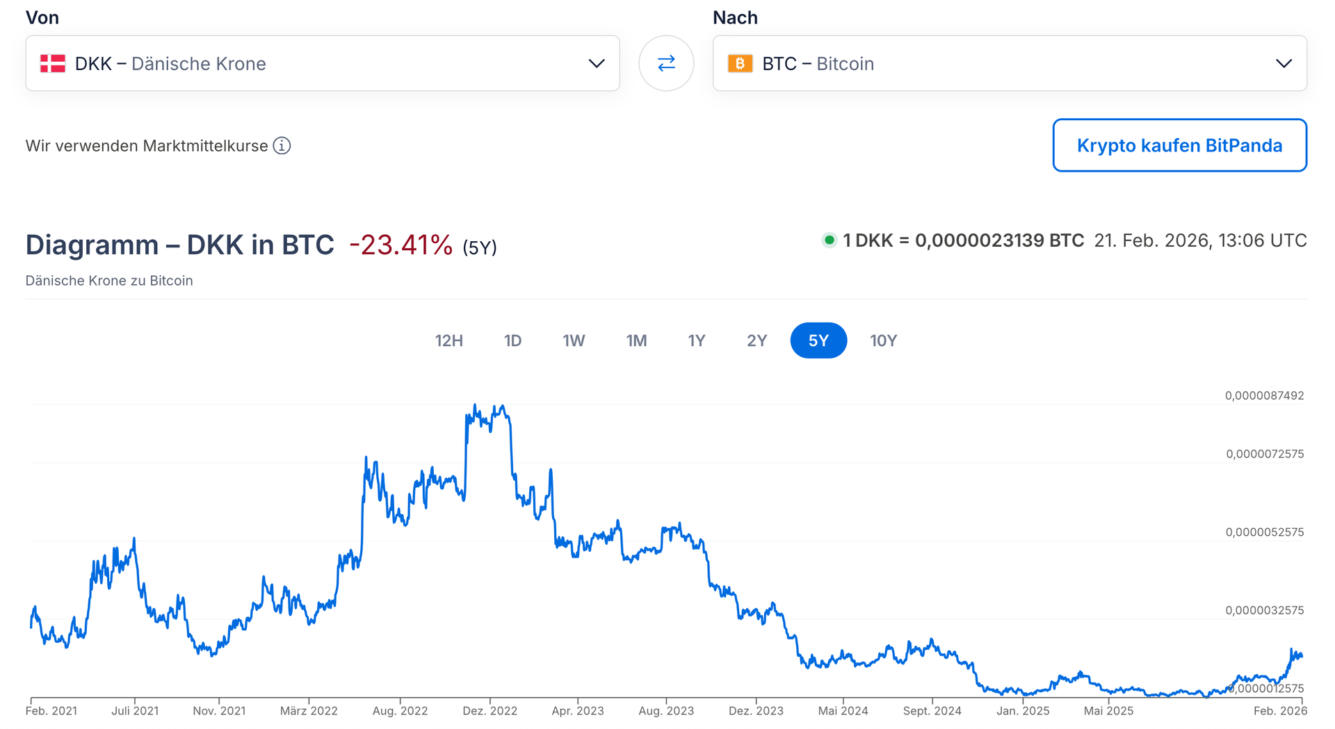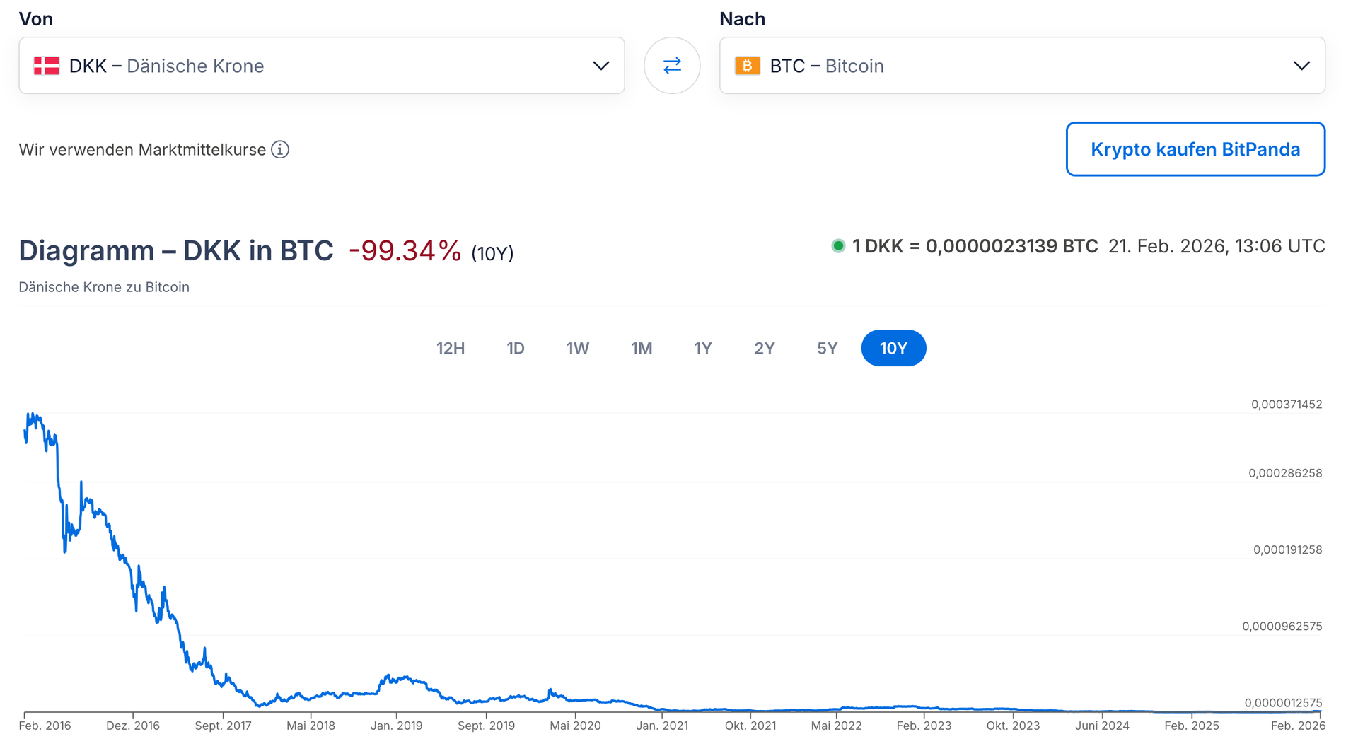 Findest du? In Bitcoin umgerechnet hat die Währung in den letzten 10 Jahren 99,34 % an Wert verloren. In den letzten 5 Jahren 23,41 %. In den letzten 2 Jahren 18,22 %. Für mich ist das alles andere als „stabil“.