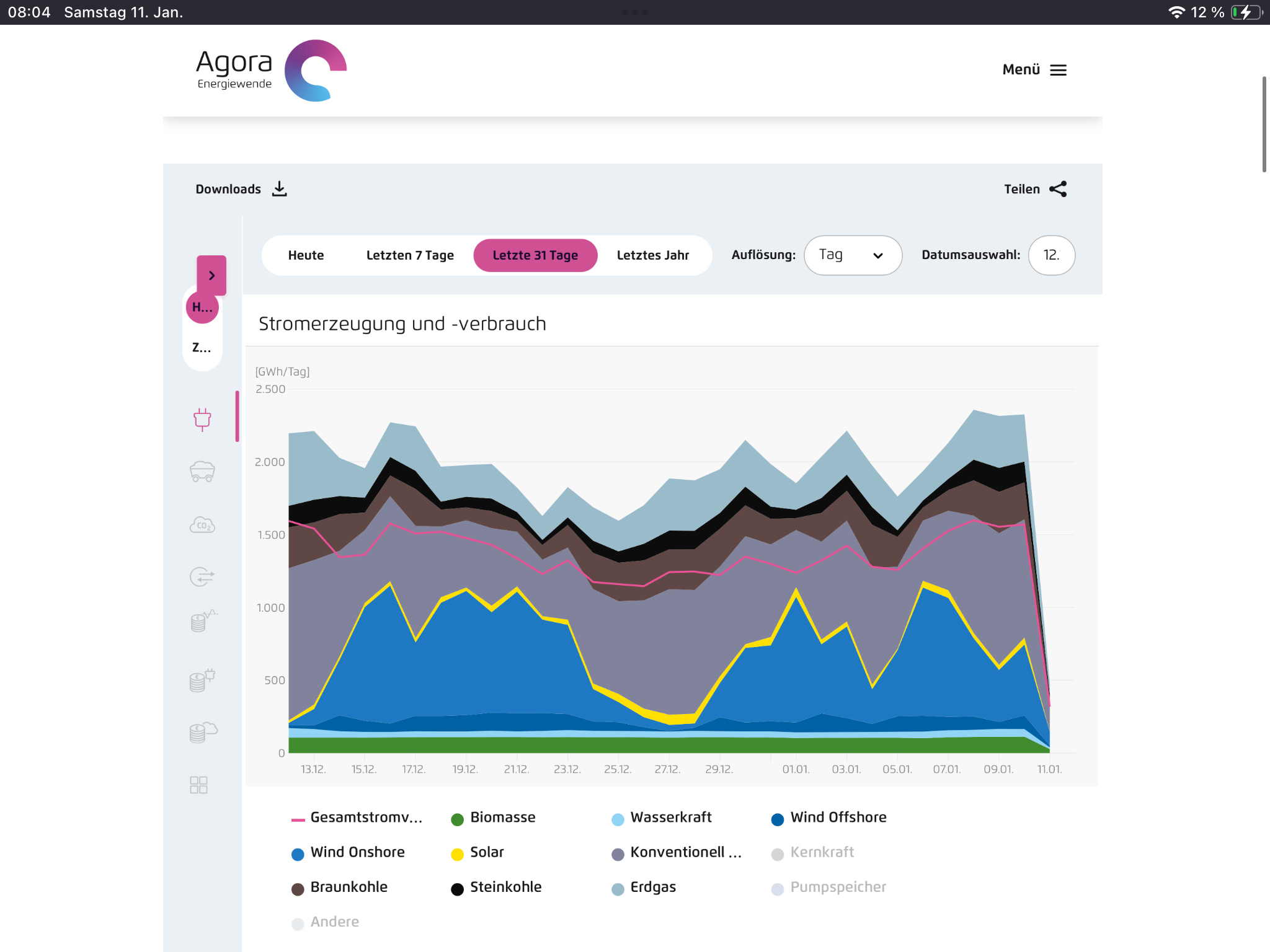 der gezeigte chart weiter oben zeigt einduetig dass sonne &wind im jahr 2024 und eben auch die wenigen anderen alternativen nicht ausreichend geliefert haben.