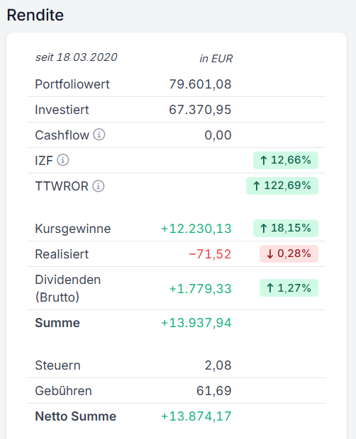 Bitte entschuldigt, dass ich die Frage nicht präziser stellen kann. Hier meine Gedanken: wenn ich z.B. in diesem Zinseszinsrechner (Zinseszinsrechner: Zinsen einfach berechnen) mein Anfangskapital eingeben soll, welches nehme ich dann? Die 79k habe ich ja nur, da es gerade (bis auf die letzten paar Tage) eine Hochphase beim Index gibt. Die 67k können es auch nicht sein, da ich ja bereits mit diesen einige Zinsen erwirtschaftet habe und die 67k auch über Jahre zusammengespart wurden.