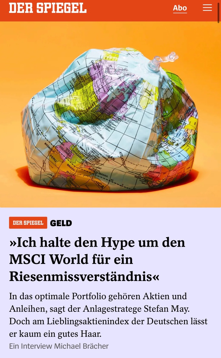 "SPIEGEL: Viele Anleger decken den Aktienteil mit Indexfonds auf den Weltindex MSCI World ab.