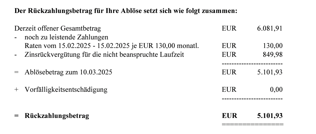 Und wenn ja wie läuft das mit der Rückzahlung? Was müsste ich am 01.04.25 überweisen?