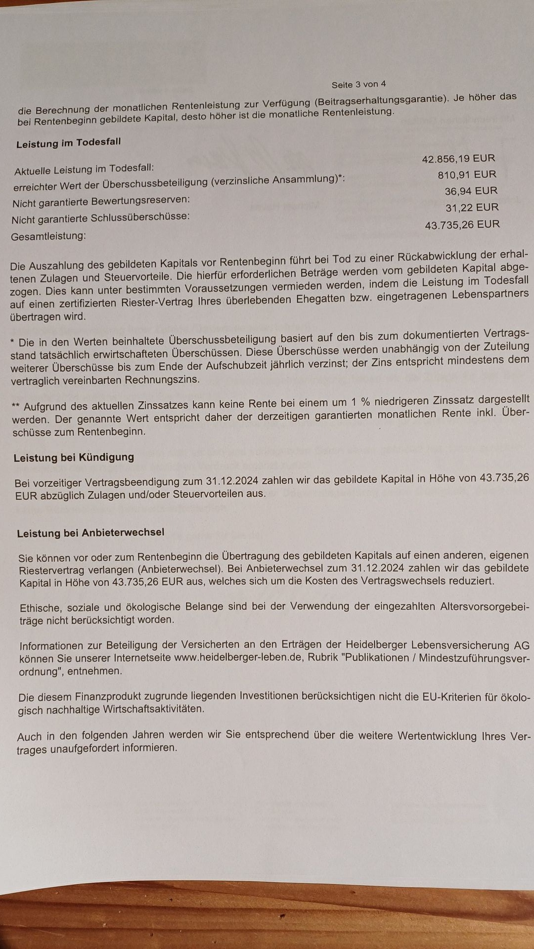 2004 noch haben wir beide eine Riesterversicherung abgeschlossen und regelmäßig eingezahlt. Auf meinen Vertrag kommen die Zulagen für zwei Kinder, die aber schon 15 und 17 sind. Der Vertrag hat eine garantierte Verzinsung von 2.75%.