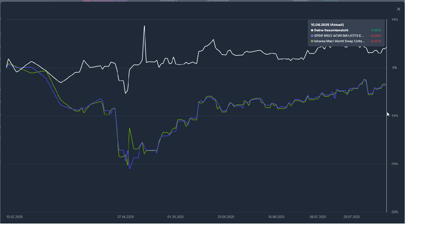 So wie ich das sehe hast du mit den beiden ETFs und mit (mutmaßlich) einem Großteil deiner Einzelaktien, immer wieder das Gleiche eingekauft.