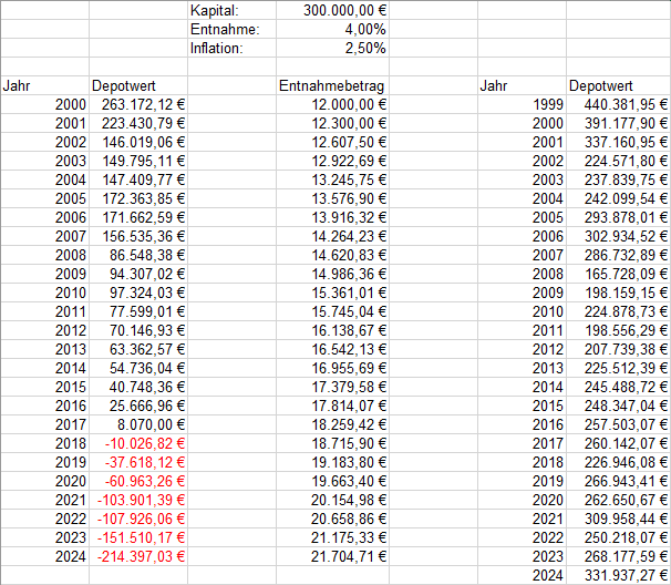 Bitte einmal Renditereihenfolgerisiko googeln! Und dann modellieren, wie es aussieht, wenn die Aktien um 70% einbrechen.
