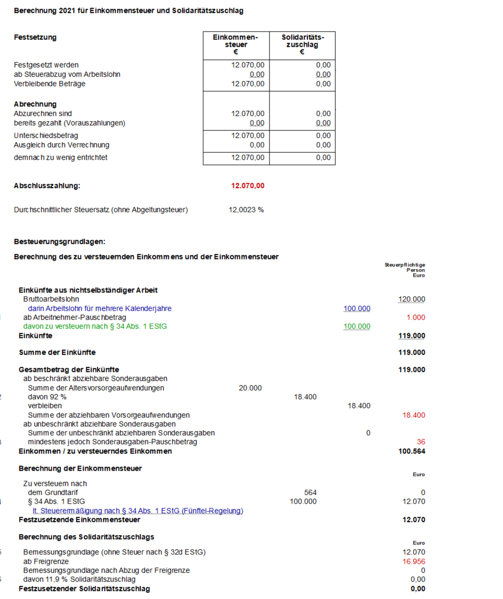 Um eine evtl. Fünftelregelung anzuwenden, hätte ich folgende Fragen.