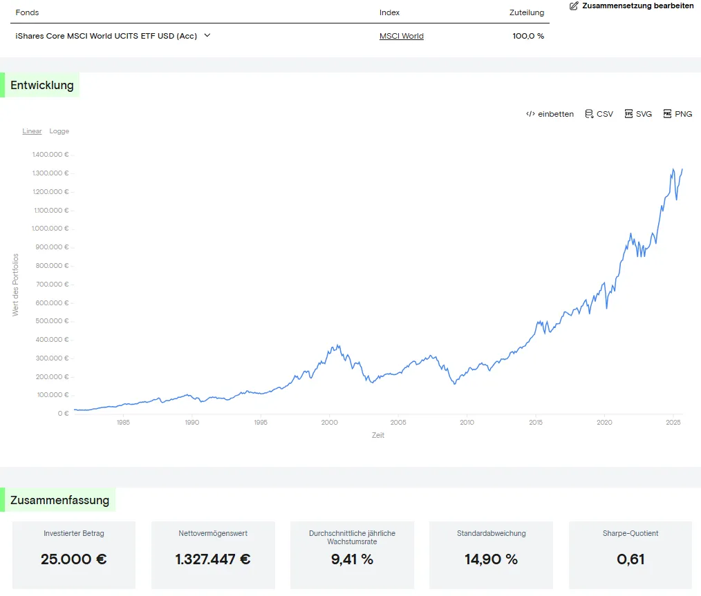 Meine Wette: aus 50.000 DM in 1981 sind in 2025 circa 112.000 Euro geworden.
