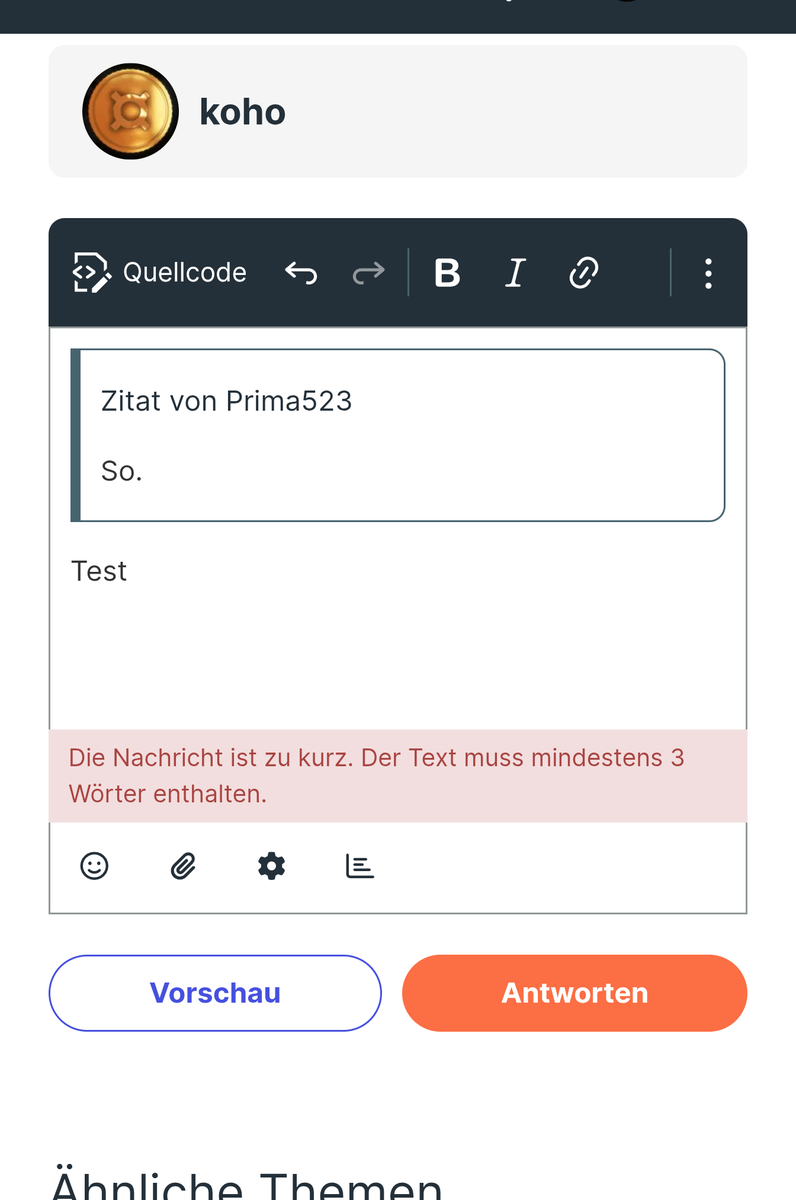 Das macht andere Forensoftware genauso, weil ein Gespräch / eine Diskussion sonst sehr einsilbig werden kann. Kommt meiner Erfahrung nach aber eher selten vor daß man nur ein einziges Wort postet, von daher keiner Aufregung wert.