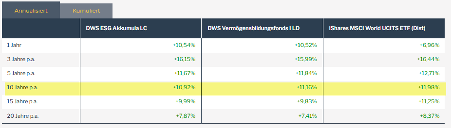 • Ich habe die Fonds einmal auf die letzten 10 Jahre mit dem MSCI World verglichen.
