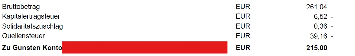 Es fällt eine Quellensteuer von 15% an, die aber angerechnet wird.