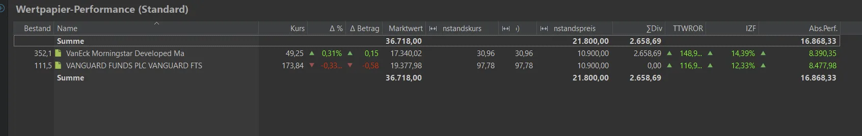 Beim vaneck ist dann noch das problem dass dieser niederländische Steuer mit berücksichtigt wird, bei der endgültigen Berechnung, weswegen ich hier der Einfachheit die teilfreistellung ignoriert habe, was eine Berechnung zum Nachteil des vaneck gegegebenfalls Zur Folge hat, auch hier war mir die nähere Betrachtung die Mühe einfach nicht wert, erst recht nicht um diese Uhrzeit.