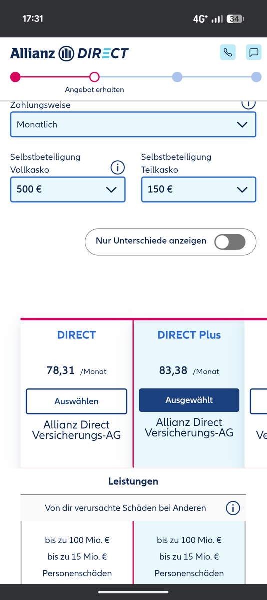 Jetzt habe ich selbst mal gerechnet und bei der Allianz direkt wäre es günstiger. Habt ihr Tipps? Wie wäre die Versicherung?