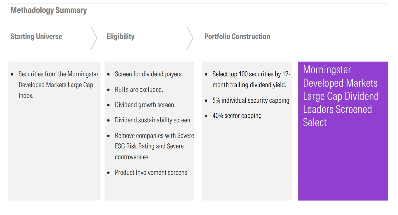 Die Auswahl erfolgt nach einem klaren, regelbasierten Prozess, der vom Indexanbieter Morningstar definiert wird. Hier ist der Ablauf im Detail: