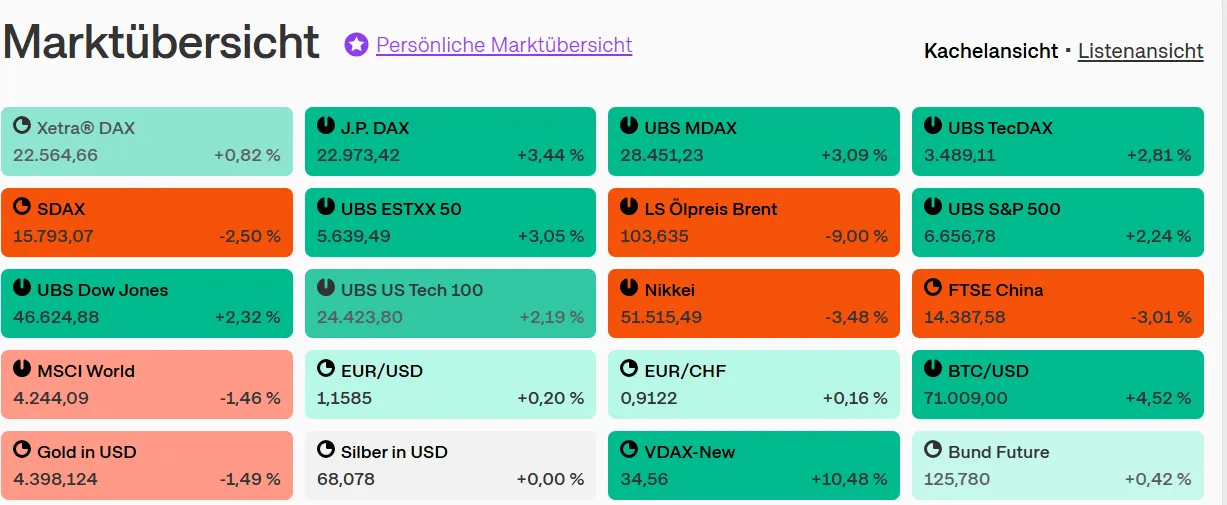 hab mich auch gerade über die vielen grünen Balken in Onvista gewundert Danke für den Hinweis, warum. Auf Tagesschau hierzu noch keine Info...