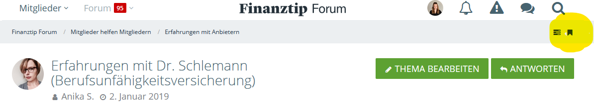 Altsachse , angesichts des von Ihnen gewählten Pseudonyms vermute ich, dass Sie weder eine Berufsunfähigkeitsversicherung noch eine private Krankenversicherung benötigen. Insofern sind Sie wohl nicht Zielgruppe dieses Threads. Für andere Ratsuchende dürfte es aber hilfreich sein, jeweils aktuelle Rückmeldungen von unterschiedlichen Personen mit unterschiedlichem beruflichen Hintergrund zu lesen. Oben hat Xenia Ihnen ja beschrieben, wie Sie vorgehen können, damit Sie die positiven Erfahrungen nicht mehr zu lesen brauchen.