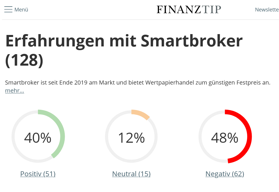 PS: Wenn man die die Bewertungen hier bei finanztip oder auch im WWW anschaut ist ist gerade zu ein Witz das Smartbroker noch eine Empfehlung ist. Auf dem Papier bzw. den Konditionen vielleicht, der Service ist an Unvermögen kaum zu Toppen und das schlechteste was ich je erlebt habe im Finanzsektor.
