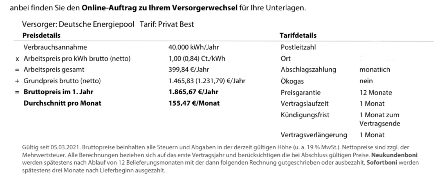 Habe direkt online neuen Gasversorgungsvertrag zum 01.10. abgeschlossen.
