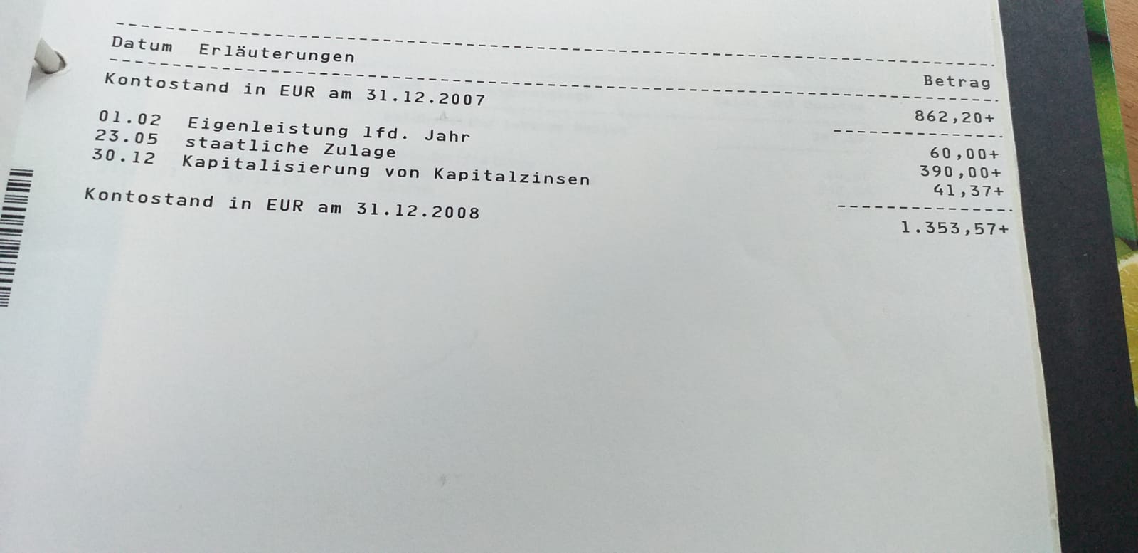hab mal meine Kontoauszüge und einen kurzen Vertragsauszug von 2005 in den Anhang gepackt.