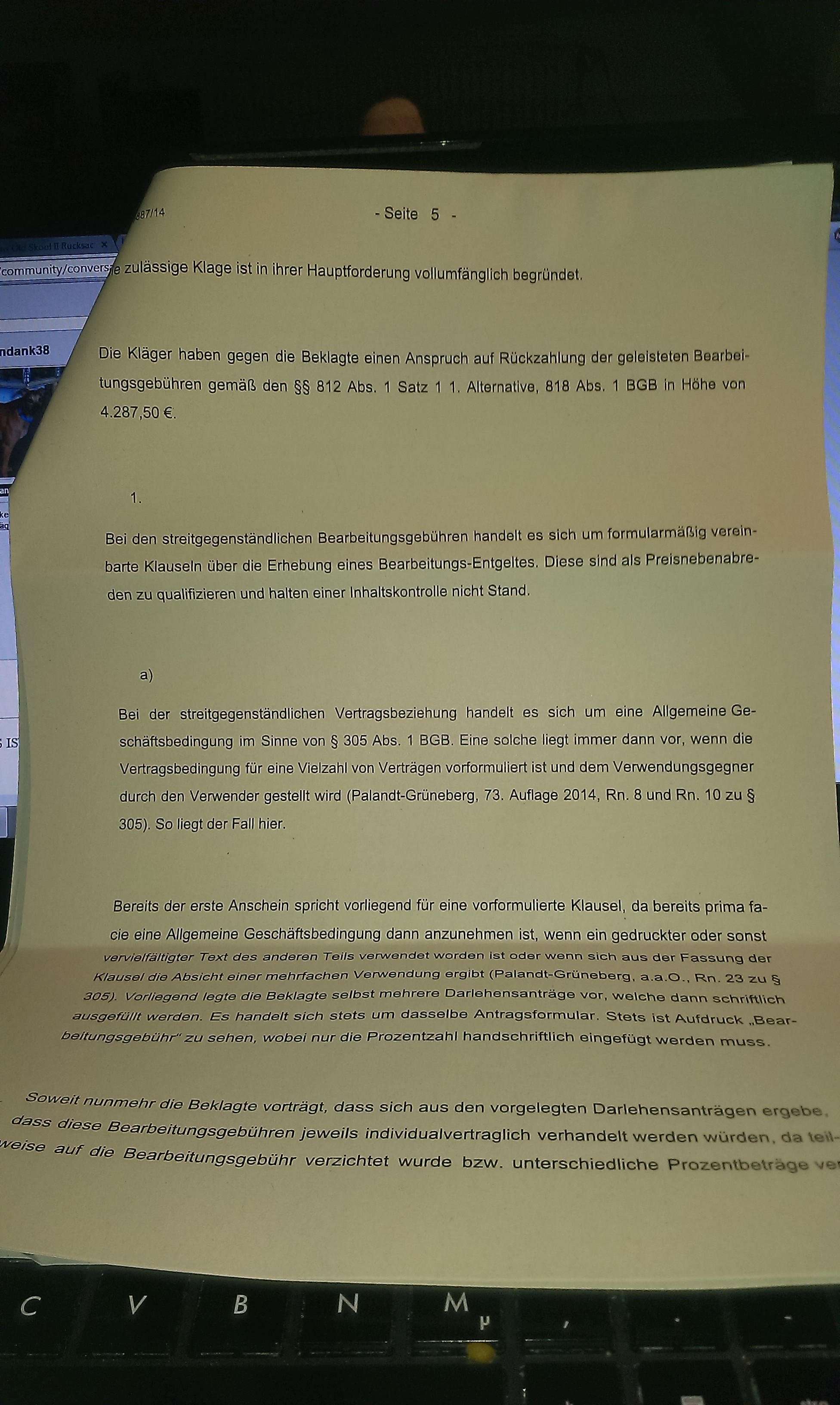 Hi wenn wir das mit der BearbeitungsGebühr durchhaben sollten wir uns auf jeden Fall wegen des Widerrufs austauschen, vor allem die jeweiligen Fassungen nach Abschlussjahr . Wie ich im Internet recherchiert habe, gibt es beide Versionen, Kündigung und Rückabwicklung und Angebot eines besseren Zinssatzes. kann man gut bei der VZHH schauen.