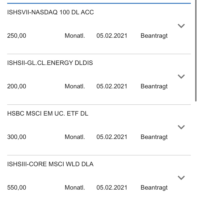 750€ in ETFs und 750€ in Aktien ..