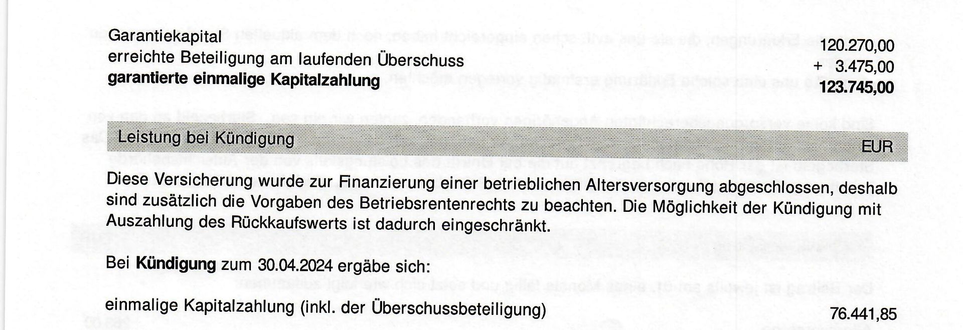 Danke schon mal euch beiden. Ja die Kündigung mit 60 scheint mir nach aktuellem Kenntnisstand am lukrativsten.
