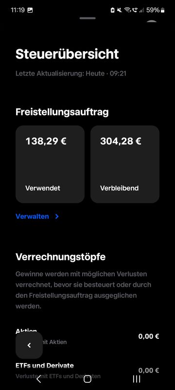 Ich hab bei meinen 2 Brokern( etf langfristig aber Dividenden und Zins aufs verrechnungskonto + depot aktien) in Summe 995 Euro eingestellt. (Da ich keine Ahnung habe ob ich für mein Girokonto etc noch Restbetrag brauche).