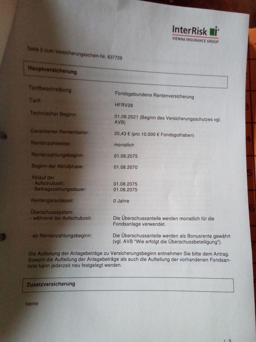 Oh man eben von ihm Sprachnachricht bekommen,wenn ich zuviel Geld hätte um so ein Mist zu machen,kann ich es ihm auch überweisen.Ich hätte ihm versprochen bevor ich sowas mache ,mit ihm darüber zu reden.Die Nettopolice der Interrisk wären die besten zwecks Rentenversicherung