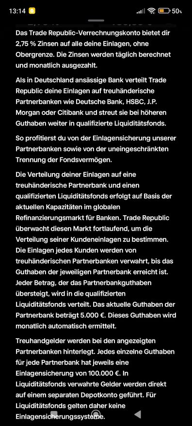 Ich bin und bleibe mit meinem Hauptkonto bei der ING. Das TR-Girokonto habe ich als zweites Konto aktiv. Das hat mir schon bei der neuen Grundsteuer "den Arsch gerettet". 0,66 € zu bezahlen, ING hat einen Mindestzahlbetrag von 1 €. Trade Republic hat es ohne Probleme angenommen.
