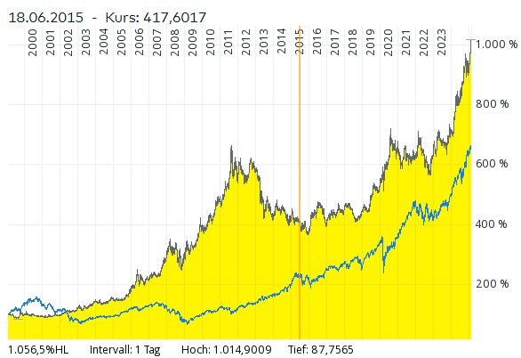 Begründung: Mein Einkommen deckt meine Ausgaben mehr als ab und Geld, das man nicht benötigt, sollte in den Aktienmarkt. Gehört später ohnehin meinen Enkeln. Und die haben Zeit.