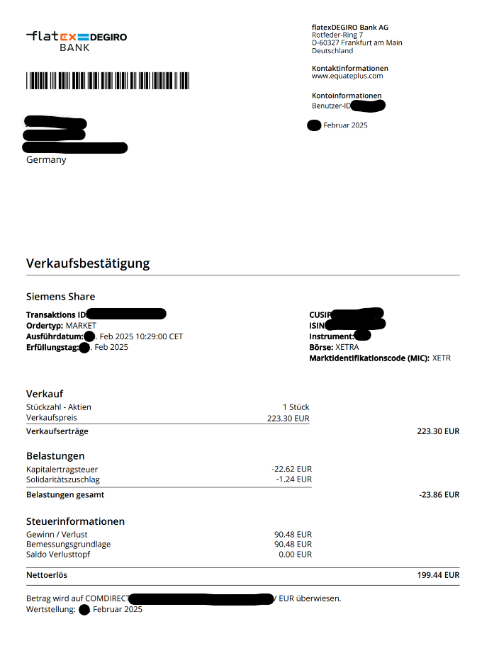 - Die Abrechnung von Equatex genau anschauen und mit dem eingebuchten Bestand bei Flatex (vor dem Verkauf) vergleichen.